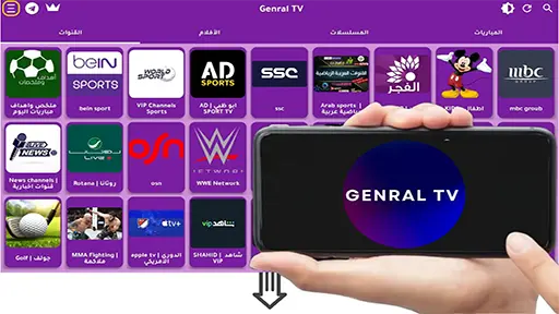 إن كنت تبحث عن منصة ترفيهية واحدة تجمع كل أنواع القنوات التلفزيونية من رياضية وإخبارية وترفيهية وأفلام ومسلسلات في مكان واحد متكامل، فإن تحميل تطبيق General TV Pro مهكر هو الخيار الأذكى الذي طالما بحثت عنه. يتميز برنامج جنرال تيفي برو General TV APK بكونه منصة بث تلفزيوني متكاملة تضم آلاف القنوات العربية والعالمية المتنوعة مع تحديث يومي مستمر يضمن توافر أحدث المحتوى دائماً بجودة HD و Full HD بدون تقطيع أو انقطاع. تطبيق General TV Pro مهكر اخر اصدار ليس مجرد تطبيق قنوات عادي، بل هو مصدر احترافي شامل يغنيك عن الاشتراك في باقات تلفزيونية مكلفة ويوفر لك تجربة مشاهدة لا مثيل لها على هاتفك الأندرويد مجاناً وبدون أي قيود.